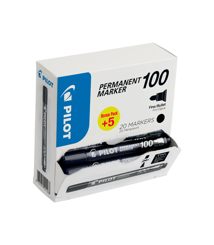 Marqueur permanent 100, boîte de 15 + 5 pièces, Bleu/Noir – PILOT