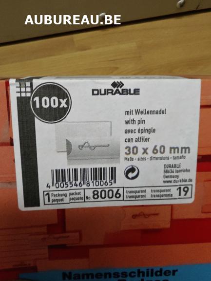 **Catégorie :** Bricolage / Fournitures de couture-Boîte de 100 badges 30 x 60 mm avec épingle Durable réf 8006