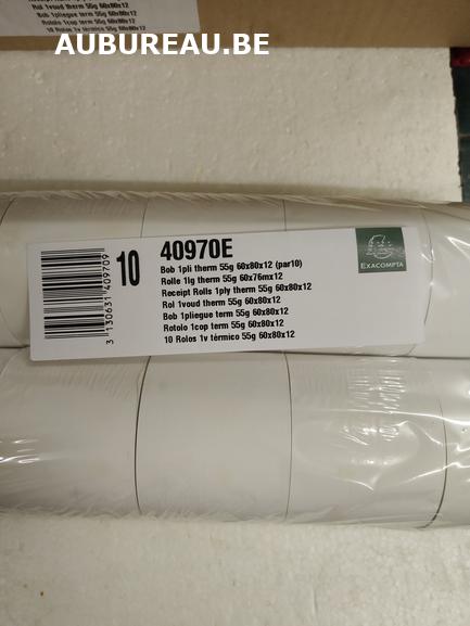 Bobine pour tickets de caisse 60x80mm - 76m - 1 pli thermique 55g/m2. - Blanc réf. 40970E en bte de 30 pièces