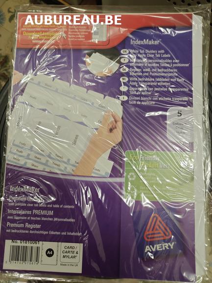 Catégorie : Fournitures de bureau / Organisateurs de documents-Jeu d’intercalaires de 5 Avery réf 01810061